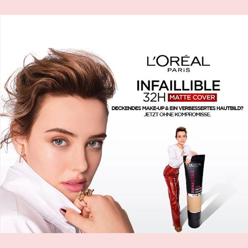 Infallible 32H Matte Cover Foundation by L'Oréal Paris. A full coverage foundation that is long wear but lightweight with a skin-like matte finish, lasting hour after hour. Never cakes, flakes or fades. A long-lasting foundation that provides a skin like finish that feels light on the skin but lasts up to 32 hours. The formula helps to even skin tone. With a high-pigment concentration in a smooth fluid formula, the foundation naturally blends onto your skin for full coverage with a barely-there feel. Shine-proof, transfer-proof and waterproof.