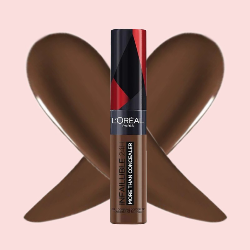 Achieve full coverage with a flawless, natural finish using L'Oréal Paris Infallible More Than Concealer in 343 Ebony. This long-wearing, high-pigment formula provides up to 24-hour coverage, effortlessly concealing imperfections, dark circles, and blemishes while maintaining a lightweight feel.