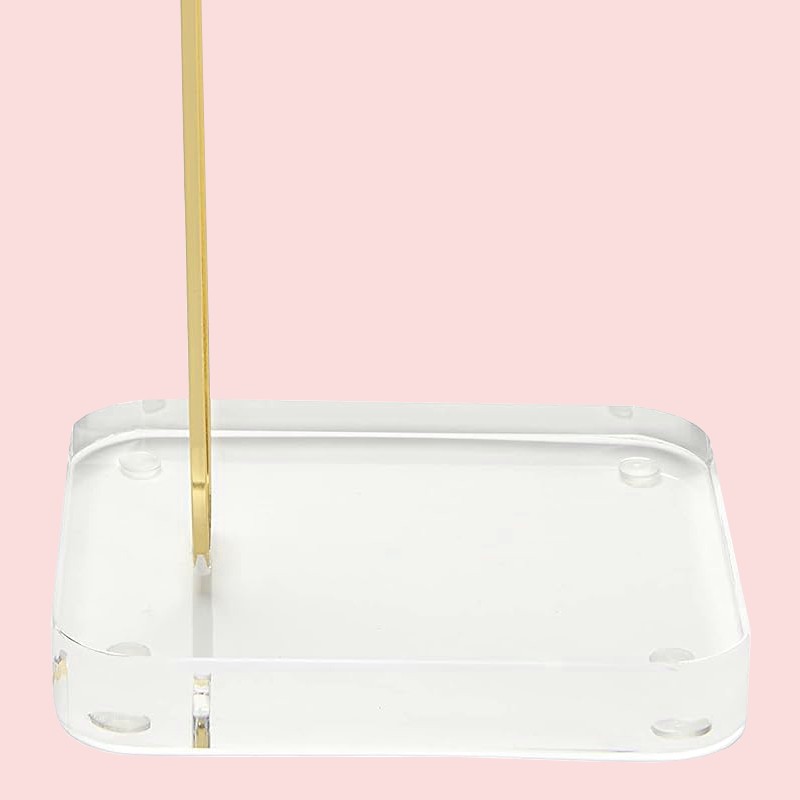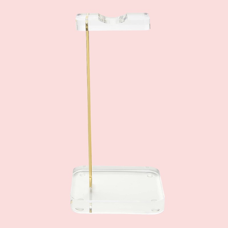 Show your headphones the respect they deserve with the Otto Premium Acrylic Headphone Stand. Crafted from high-quality clear acrylic, this stand combines minimalist design with robust durability to provide a stylish home for your favorite audio gear. The sleek clear design is perfectly complemented by luxurious gold metal accents, creating a sophisticated look that elevates any desk, dresser, or workspace.
