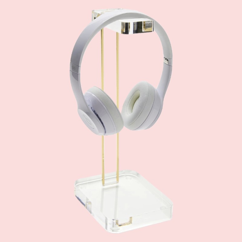 Otto Premium Acrylic Headphone Stand Clear Design with Stylish Gold Metal Accents